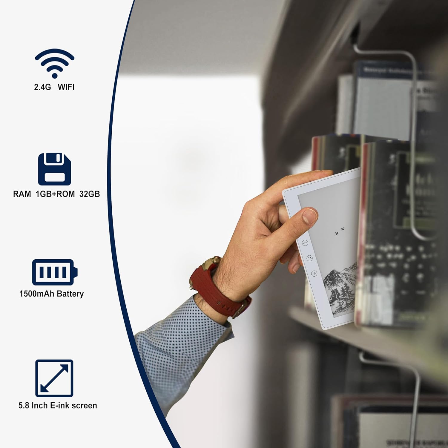 Veidoo 5.8 inch Ebook Reader, HD Touch Screen Carta E-Ink Technology, 32GB ROM(TF Card Expansion to 64G), WiFi, Long Endurance, Android E-Reader(White)